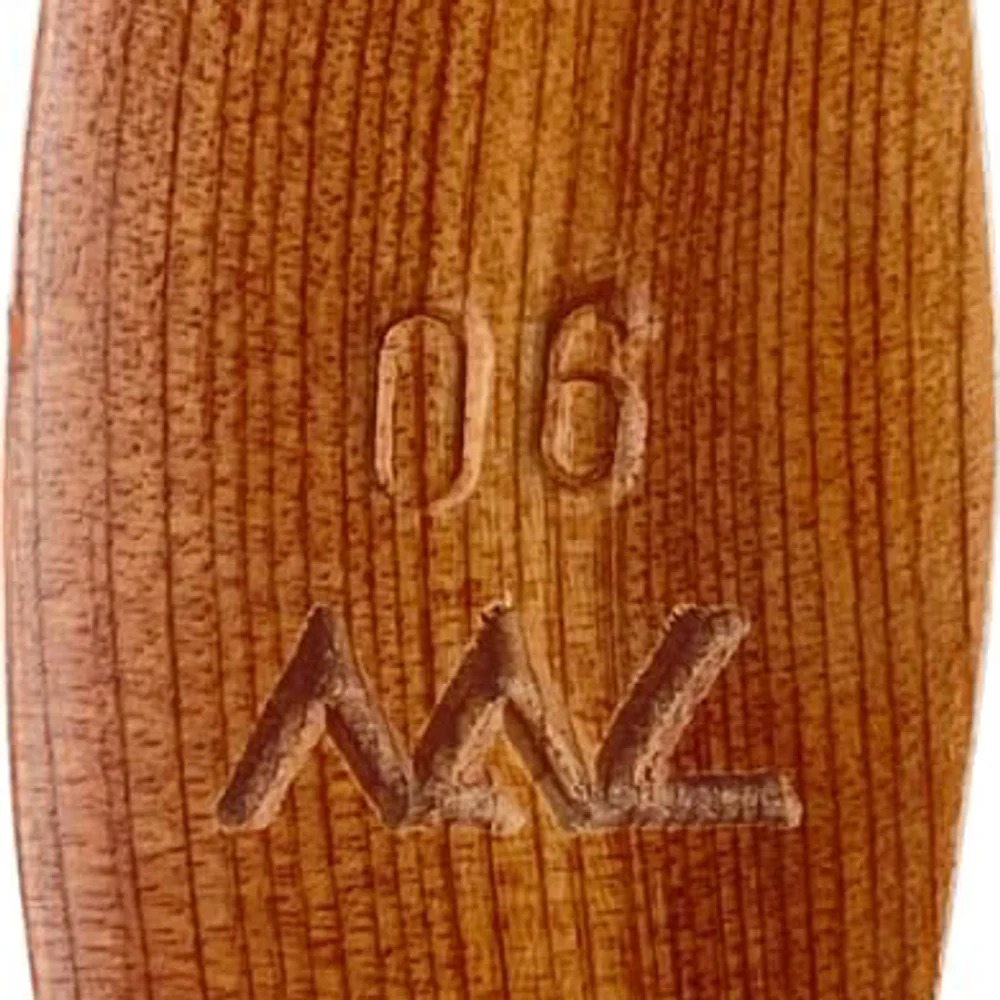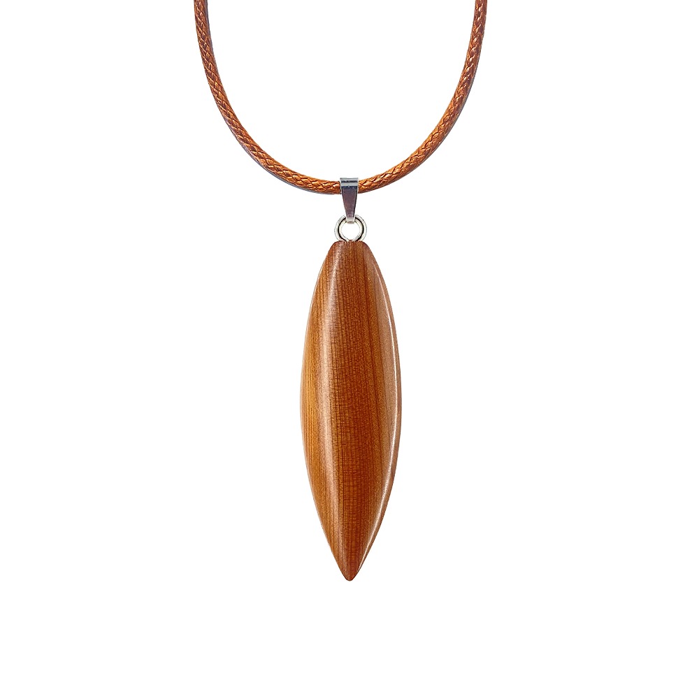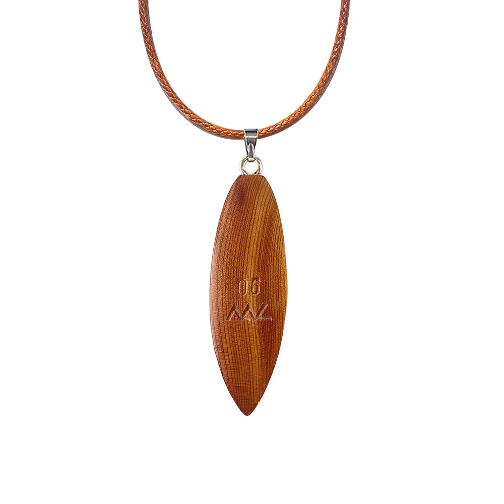 Colgante tabla de surf modelo shortboard square hecha con madera de Sabina y acabada con cera para protegerla sin que pierda su auténtico color.